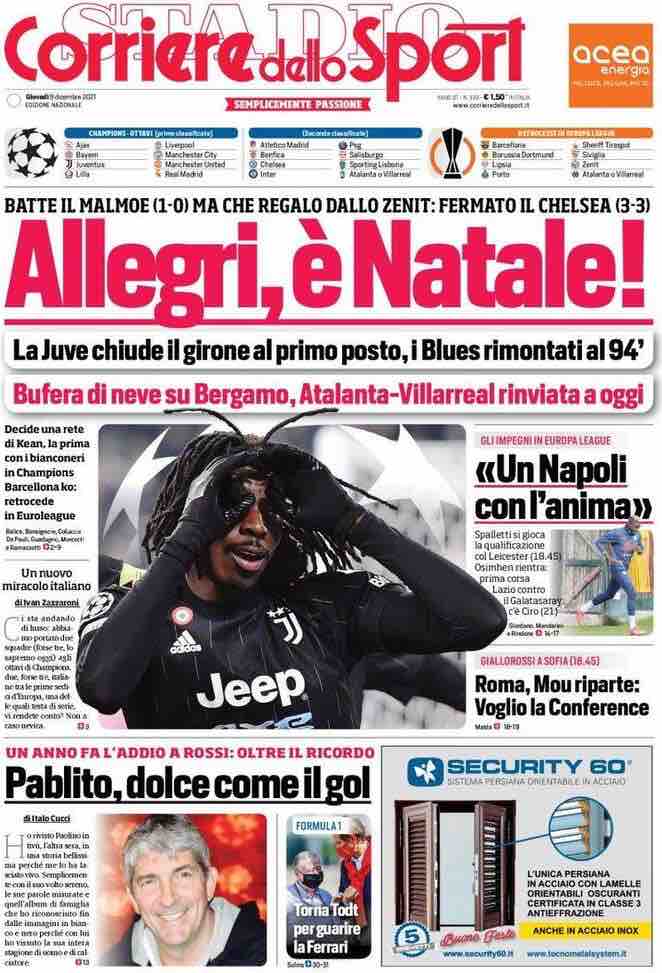 La rassegna stampa di Calciomercato.it vi propone i titoli principali sulla prima pagina di oggi, giovedì 9 dicembre 2021, del ‘Corriere dello Sport’.