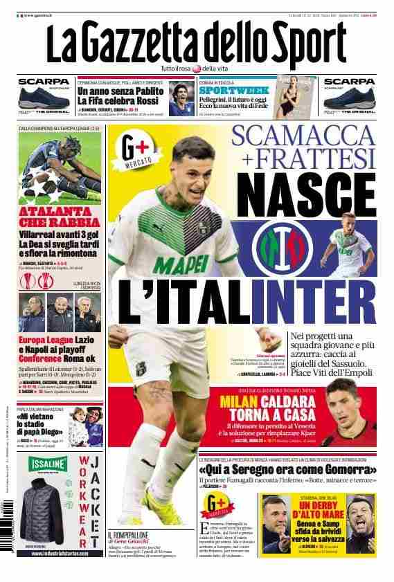 I titoli principali sulla prima pagina del quotidiano sportivo, La Gazzetta dello Sport