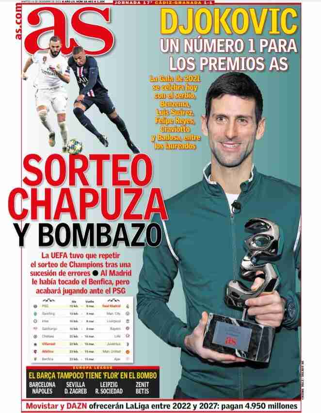 I titoli principali sulla prima pagina del quotidiano sportivo, As