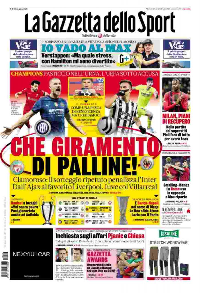 La rassegna stampa di Calciomercato.it vi propone i titoli principali sulla prima pagina di oggi, martedì 14 dicembre 2021, de ‘La Gazzetta dello Sport’: