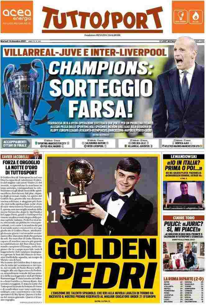La rassegna stampa di Calciomercato.it vi propone i titoli principali sulla prima pagina di oggi, martedì 14 dicembre 2021, di ‘TuttoSport’: