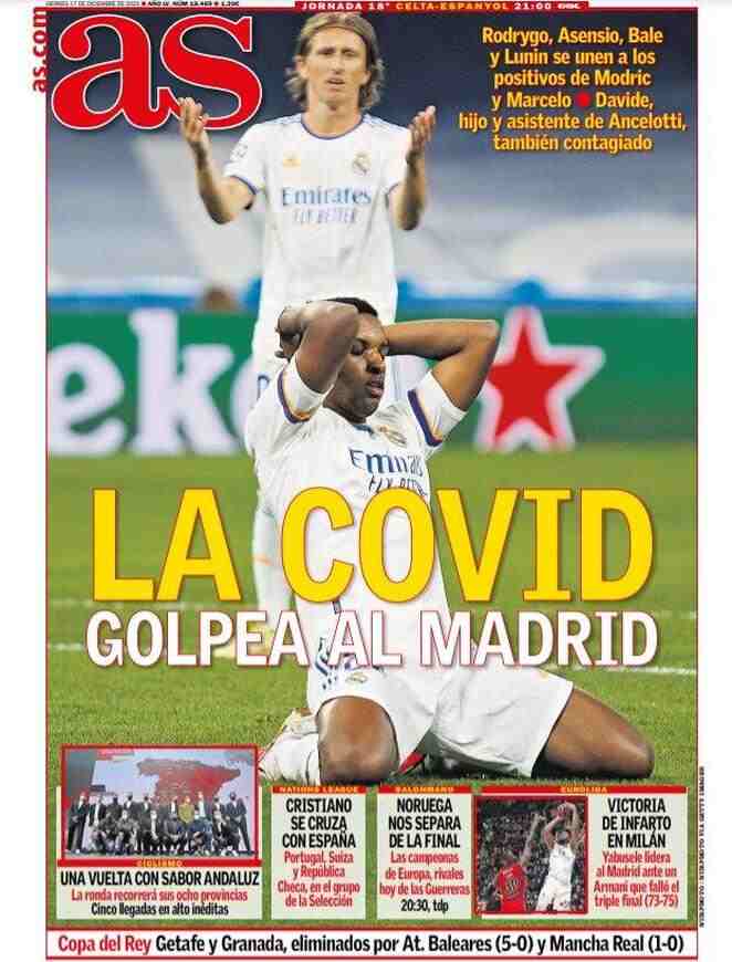 I titoli principali sulla prima pagina del quotidiano sportivo, As