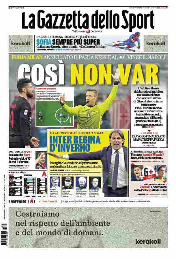 La rassegna stampa di Calciomercato.it vi propone i titoli principali sulla prima pagina di oggi, lunedì 20 dicembre 2021, de ‘La Gazzetta dello Sport’: