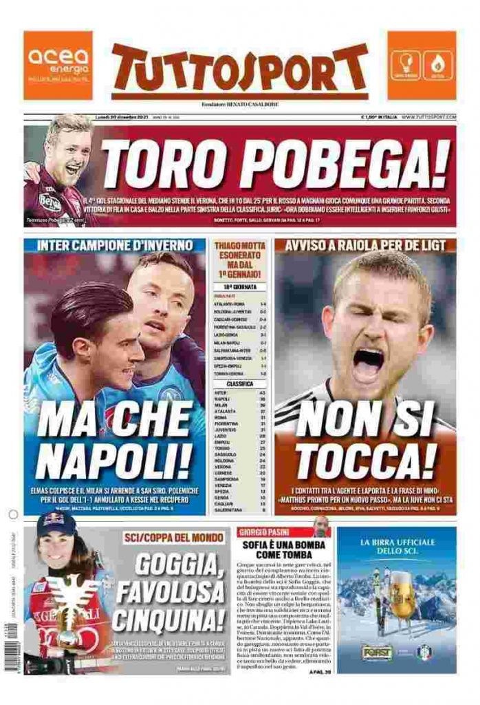 La rassegna stampa di Calciomercato.it vi propone i titoli principali sulla prima pagina di oggi, lunedì 20 dicembre 2021, di ‘TuttoSport’: