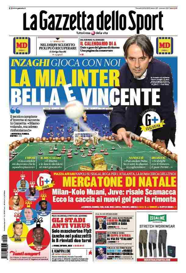 La rassegna stampa di Calciomercato.it vi propone i titoli principali sulla prima pagina di oggi, venerdì 24 dicembre 2021, de ‘La Gazzetta dello Sport’: