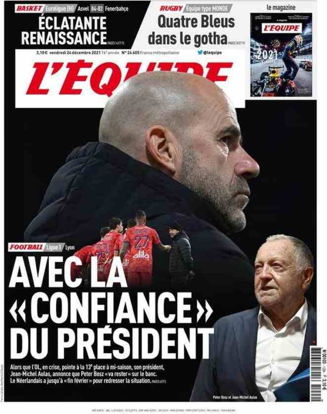 I titoli principali sulla prima pagina del quotidiano sportivo, L’Equipe