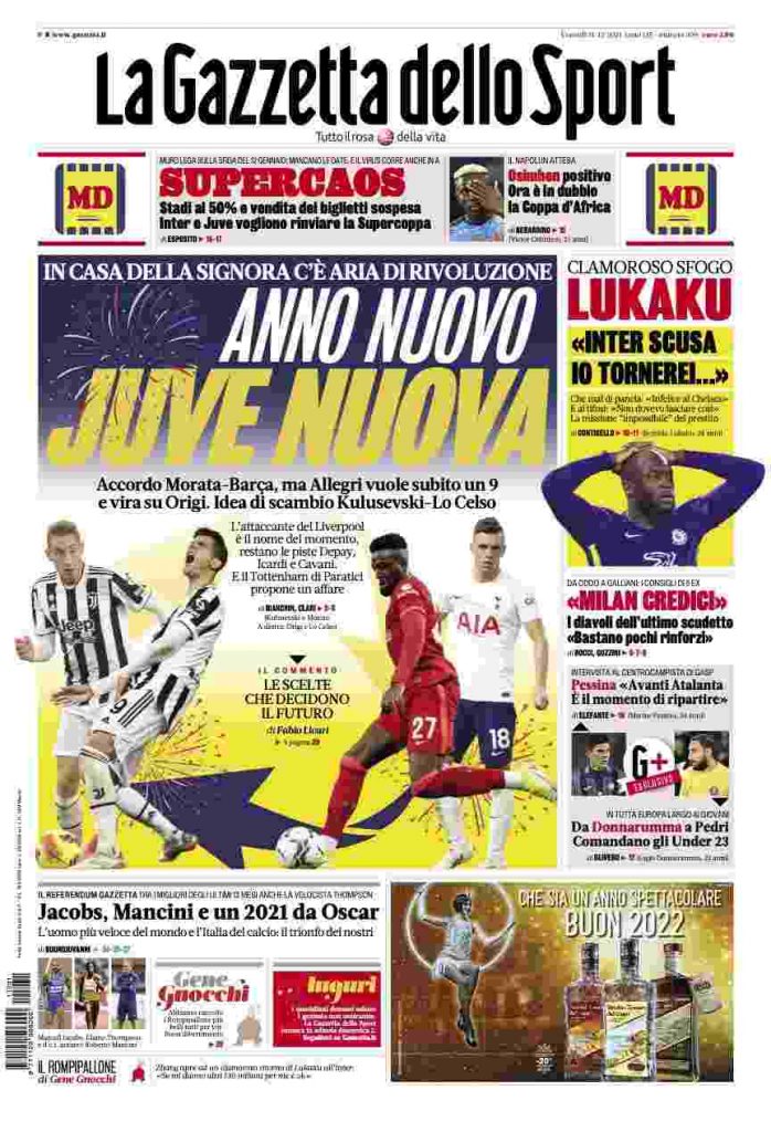 La rassegna stampa di Calciomercato.it vi propone i titoli principali sulla prima pagina di oggi, venerdì 31 dicembre 2021, de ‘La Gazzetta dello Sport’: