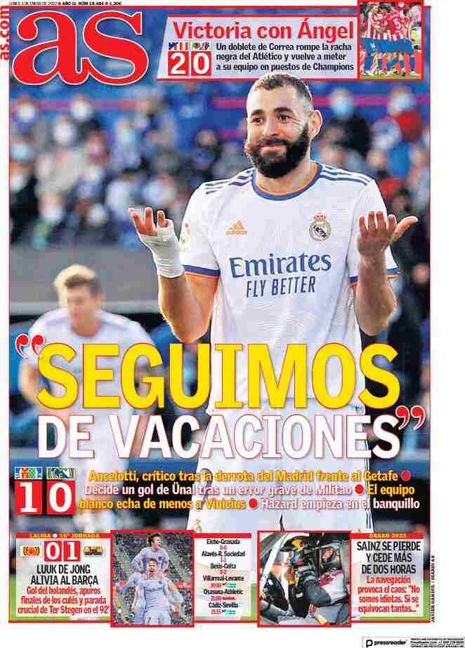 I titoli principali sulla prima pagina del quotidiano sportivo, As