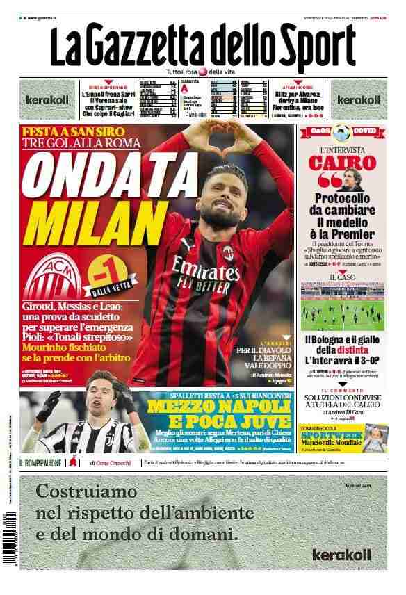La rassegna stampa di Calciomercato.it vi propone i titoli principali sulla prima pagina di oggi, venerdì 7 gennaio 2022, de ‘La Gazzetta dello Sport’: