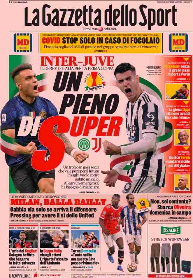 La rassegna stampa di Calciomercato.it vi propone i titoli principali sulla prima pagina di oggi, mercoledì 12 gennaio 2022, de ‘La Gazzetta dello Sport’: