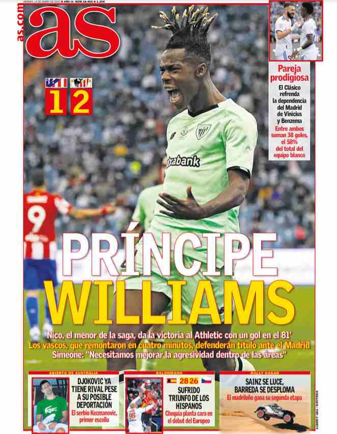 I titoli principali sulla prima pagina del quotidiano sportivo, As
