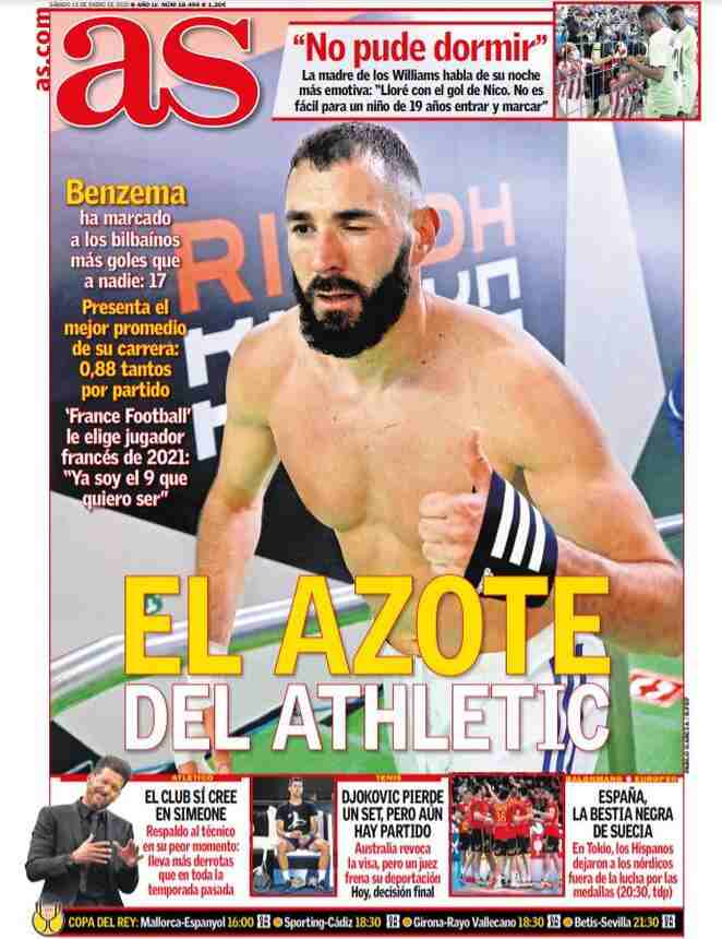 I titoli principali sulla prima pagina del quotidiano sportivo, As