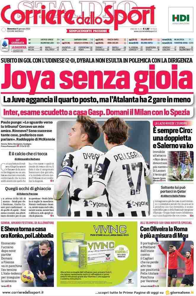 La rassegna stampa di Calciomercato.it vi propone i titoli principali sulla prima pagina di oggi, domenica 16 gennaio 2022, del ‘Corriere dello Sport’: