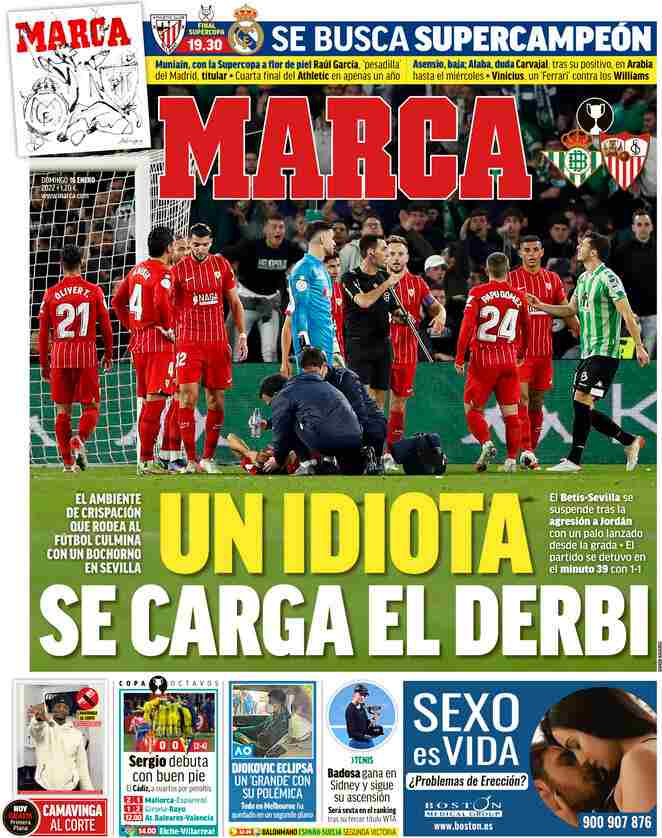 I titoli principali sulla prima pagina del quotidiano sportivo, Marca
