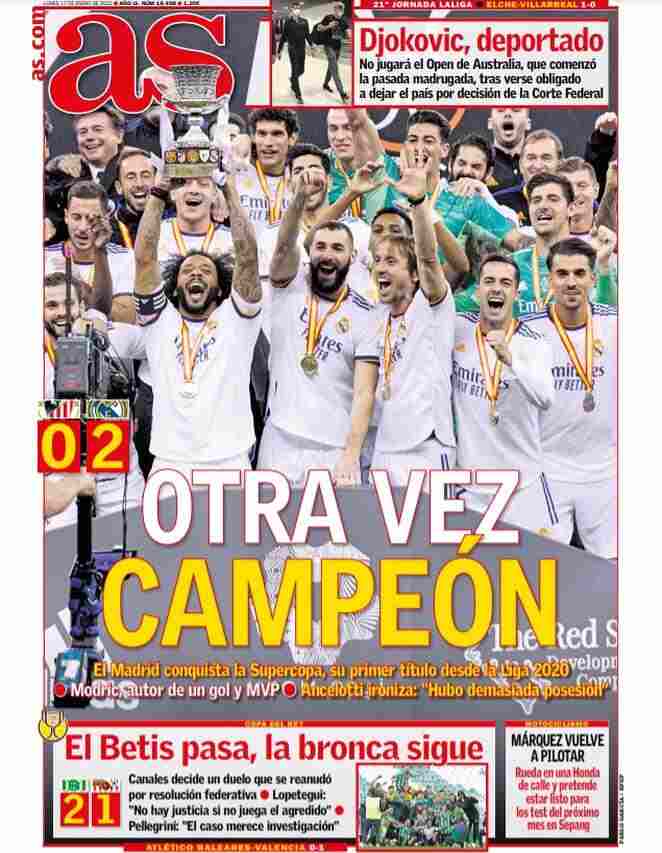 I titoli principali sulla prima pagina del quotidiano sportivo, As