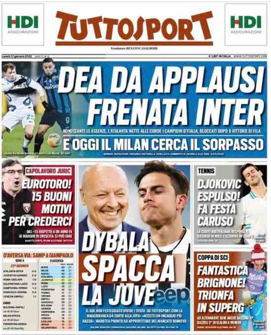 La rassegna stampa di Calciomercato.it vi propone i titoli principali sulla prima pagina di oggi, lunedì 17 gennaio 2022, di ‘TuttoSport’: