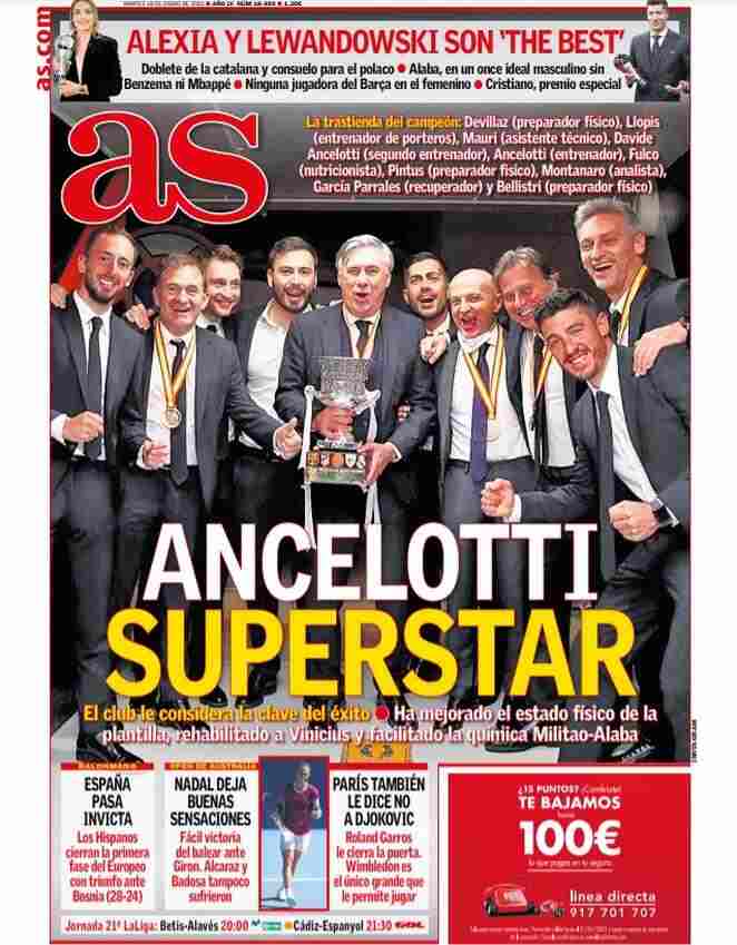I titoli principali sulla prima pagina del quotidiano sportivo, As