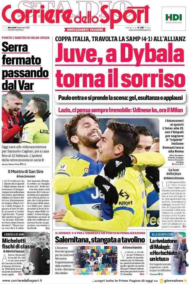 La rassegna stampa di Calciomercato.it vi propone i titoli principali sulla prima pagina di oggi, mercoledì 19 gennaio 2022, del ‘Corriere dello Sport’: