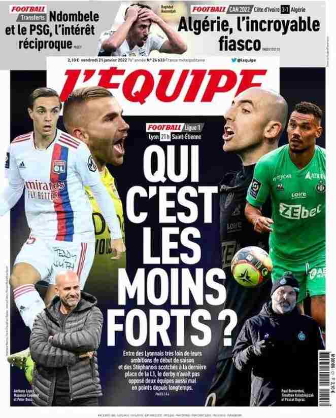 La rassegna stampa di Calciomercato.it vi propone i titoli principali sulla prima pagina di oggi, venerdì 21 gennaio 2022, di ‘L’Equipe’:
