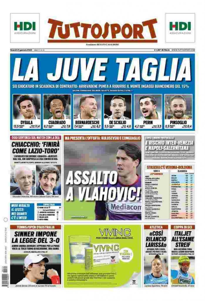La rassegna stampa di Calciomercato.it vi propone i titoli principali sulla prima pagina di oggi, venerdì 21 gennaio 2022, di ‘TuttoSport’: