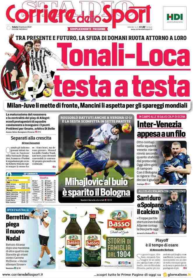 La rassegna stampa di Calciomercato.it vi propone i titoli principali sulla prima pagina di oggi, sabato 22 gennaio 2022, del ‘Corriere dello Sport’: