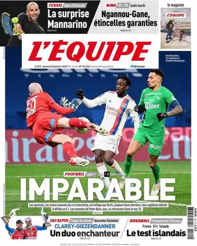 La rassegna stampa di Calciomercato.it vi propone i titoli principali sulla prima pagina di oggi, sabato 22 gennaio 2022, di ‘L’Equipe’:
