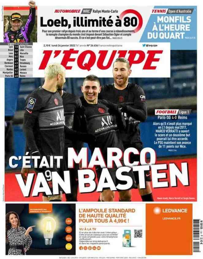 I titoli principali sulla prima pagina del quotidiano sportivo, L’Equipe