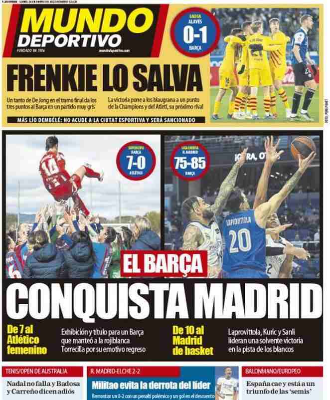 La rassegna stampa di Calciomercato.it vi propone i titoli principali sulla prima pagina di oggi, lunedì 24 gennaio 2022, del ‘Mundo Deportivo’: