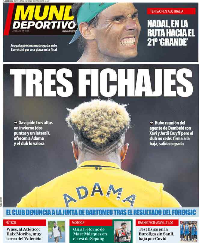 La rassegna stampa di Calciomercato.it vi propone i titoli principali sulla prima pagina di oggi, giovedì 27 gennaio 2022, del ‘Mundo Deportivo’: