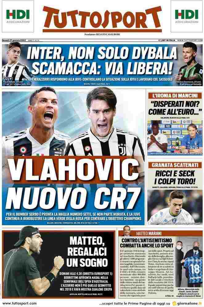 La rassegna stampa di Calciomercato.it vi propone i titoli principali sulla prima pagina di oggi, giovedì 27 gennaio 2022, di ‘TuttoSport’: