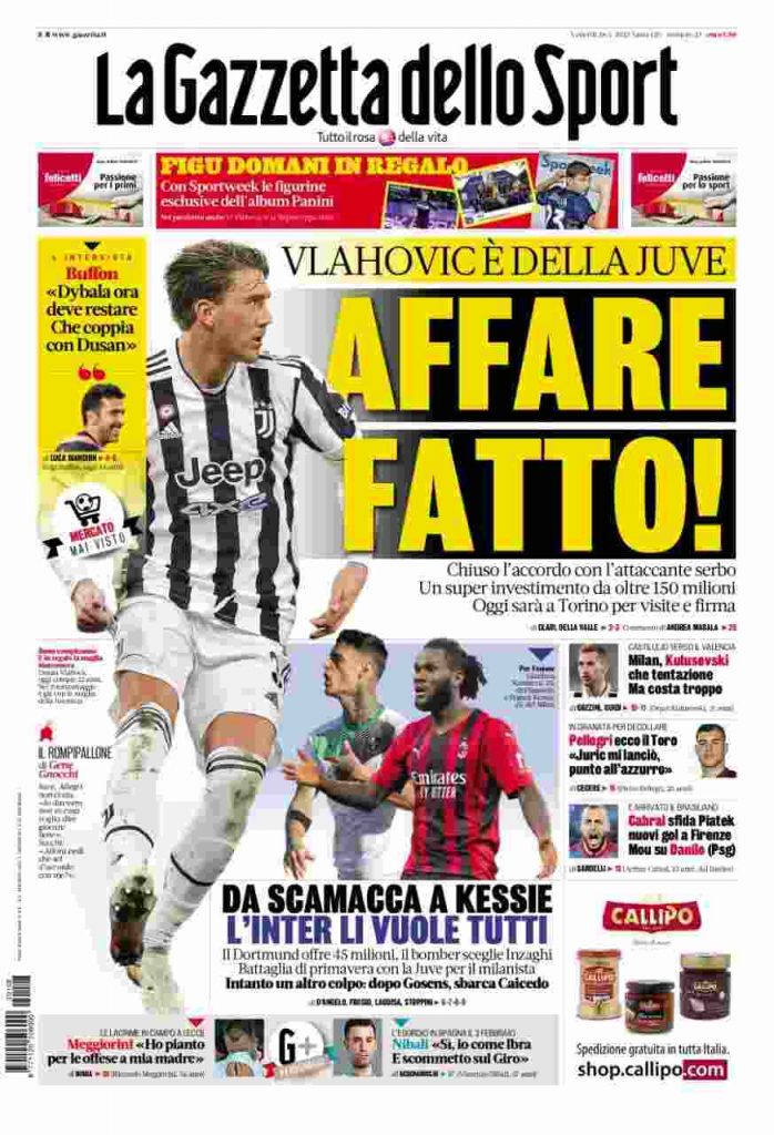 La rassegna stampa di Calciomercato.it vi propone i titoli principali sulla prima pagina di oggi, venerdì 28 gennaio 2022, de ‘La Gazzetta dello Sport’: