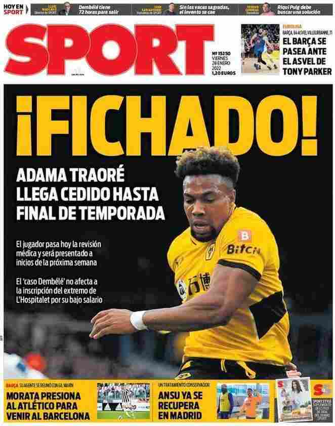 La rassegna stampa di Calciomercato.it vi propone i titoli principali sulla prima pagina di oggi, venerdì 28 gennaio 2022, di ‘Sport’: