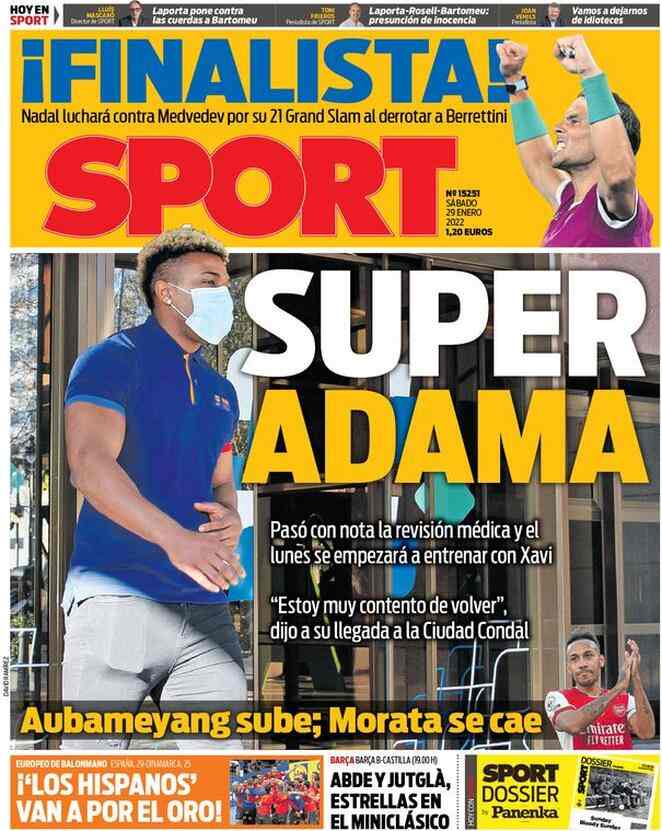 I titoli principali sulla prima pagina del quotidiano sportivo spagnolo, Sport