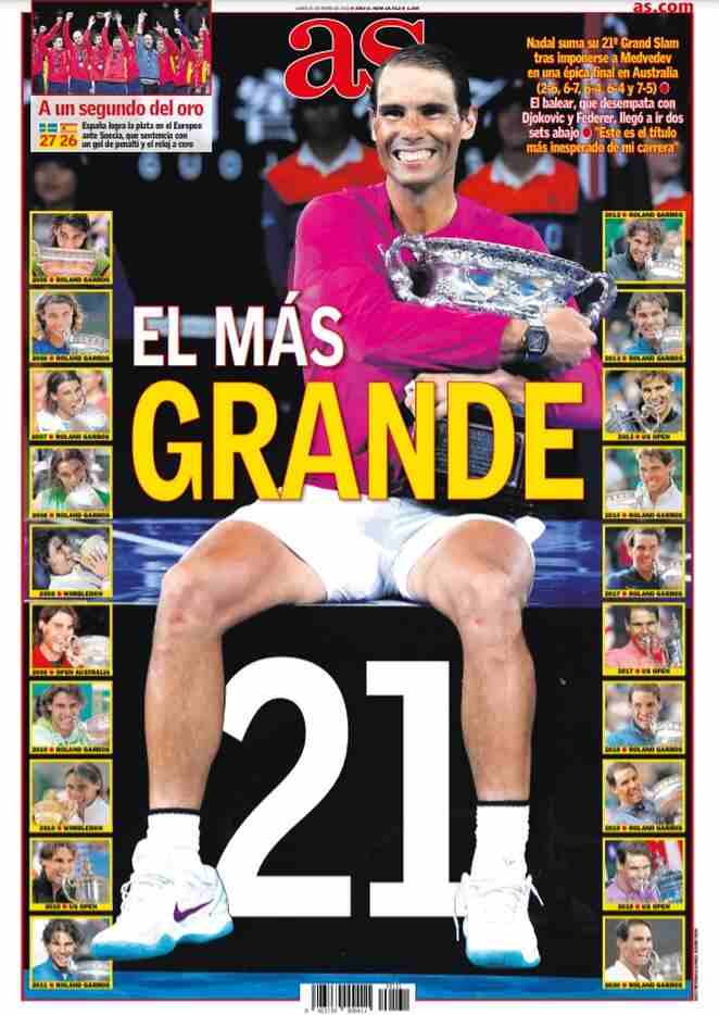 I titoli principali sulla prima pagina del quotidiano sportivo, As