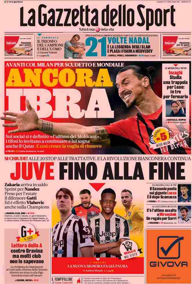 La rassegna stampa di Calciomercato.it vi propone i titoli principali sulla prima pagina di oggi, lunedì 31 gennaio 2022, de ‘La Gazzetta dello Sport’: