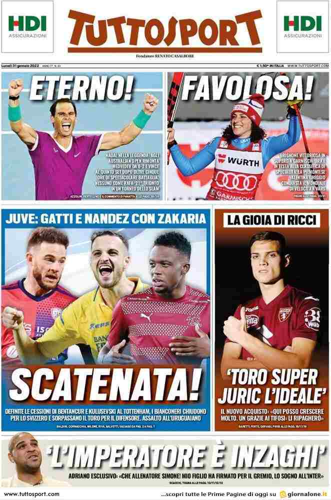 La rassegna stampa di Calciomercato.it vi propone i titoli principali sulla prima pagina di oggi, lunedì 31 gennaio 2022, di ‘TuttoSport’: