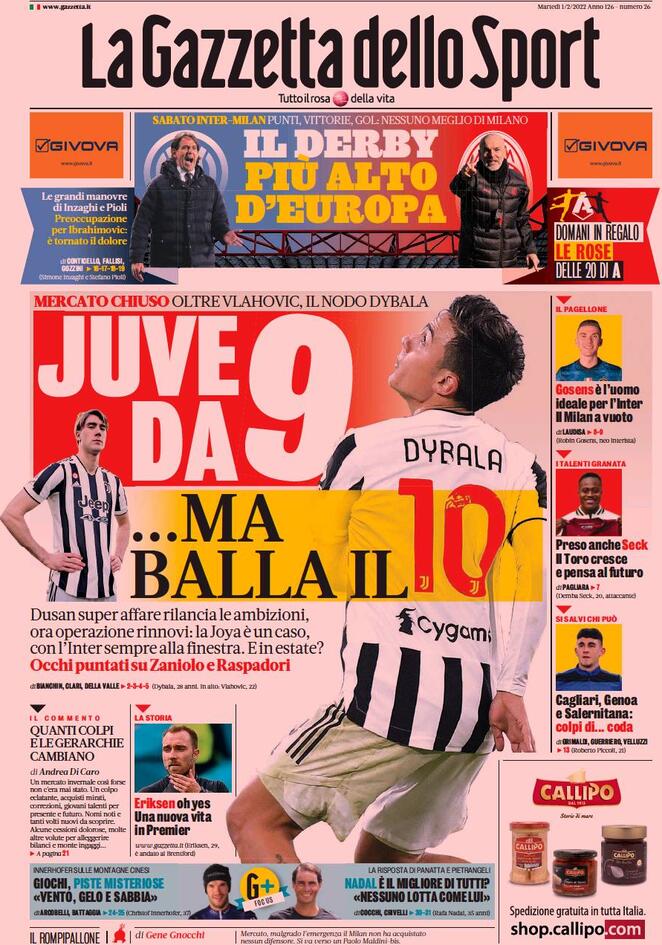 La rassegna stampa di Calciomercato.it vi propone i titoli principali sulla prima pagina di oggi, martedì 1 febbraio 2022, de ‘La Gazzetta dello Sport’: