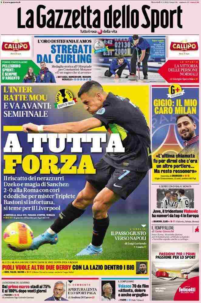La rassegna stampa di Calciomercato.it vi propone i titoli principali sulla prima pagina di oggi, mercoledì 9 febbraio 2022, de ‘La Gazzetta dello Sport’: