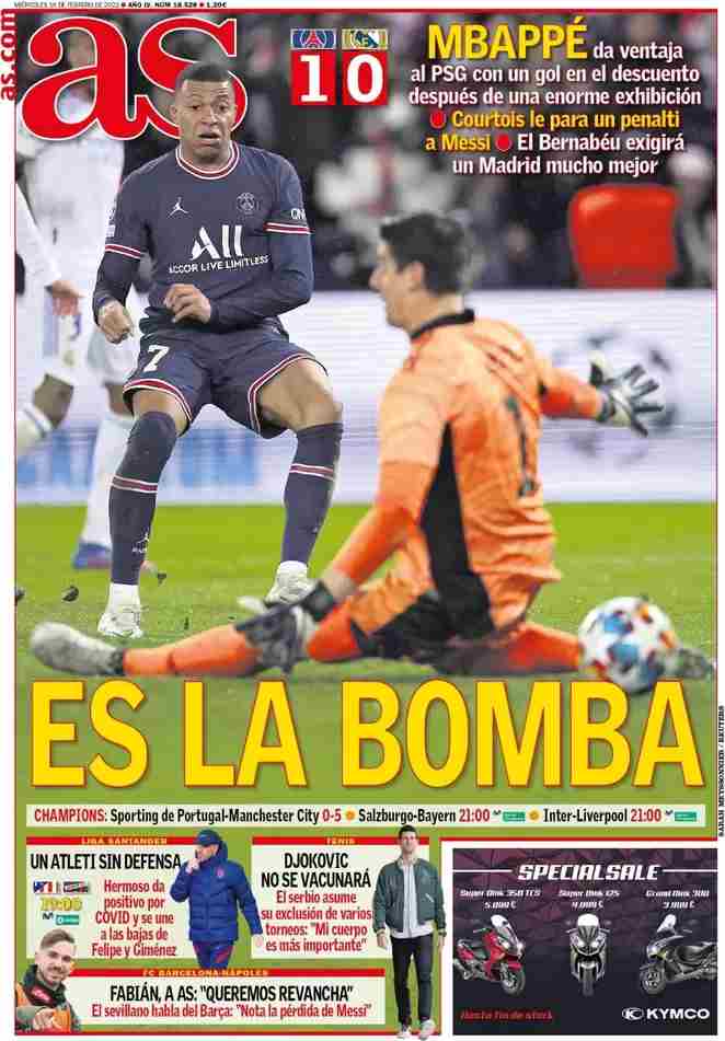 I titoli principali sulla prima pagina del quotidiano sportivo, As