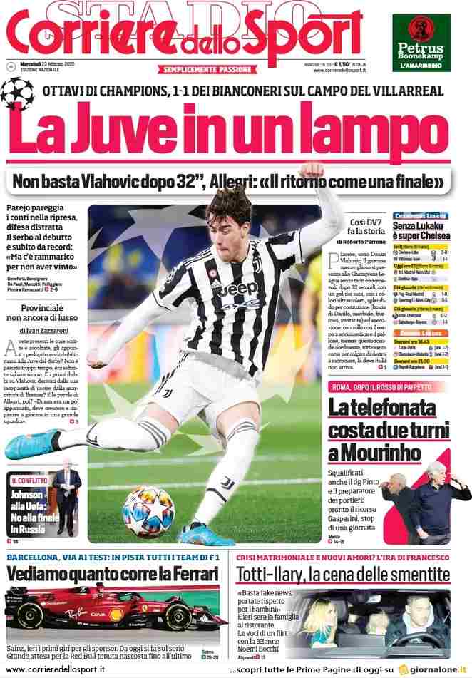 La rassegna stampa di Calciomercato.it vi propone i titoli principali sulla prima pagina di oggi, mercoledì 23 febbraio 2022, del ‘Corriere dello Sport’: