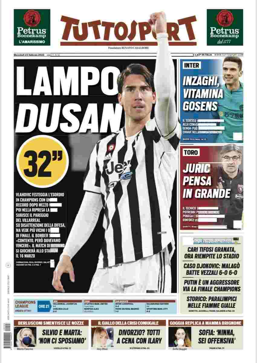 La rassegna stampa di Calciomercato.it vi propone i titoli principali sulla prima pagina di oggi, mercoledì 23 febbraio 2022, di ‘TuttoSport’: