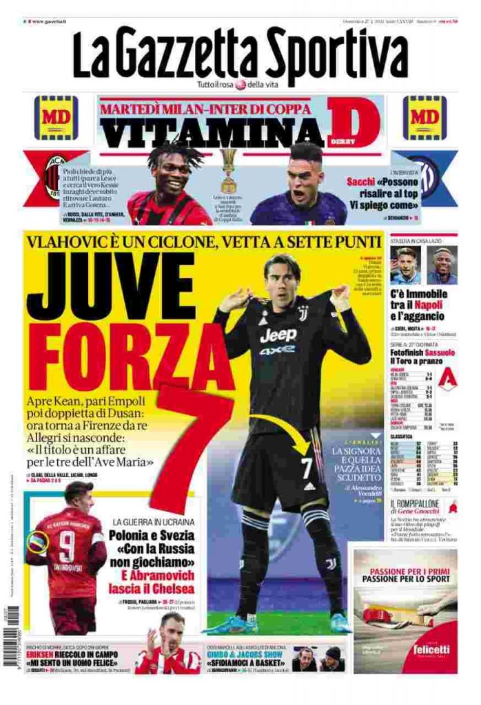 La rassegna stampa di Calciomercato.it vi propone i titoli principali sulla prima pagina di oggi, domenica 27 febbraio 2022, de ‘La Gazzetta dello Sport’: