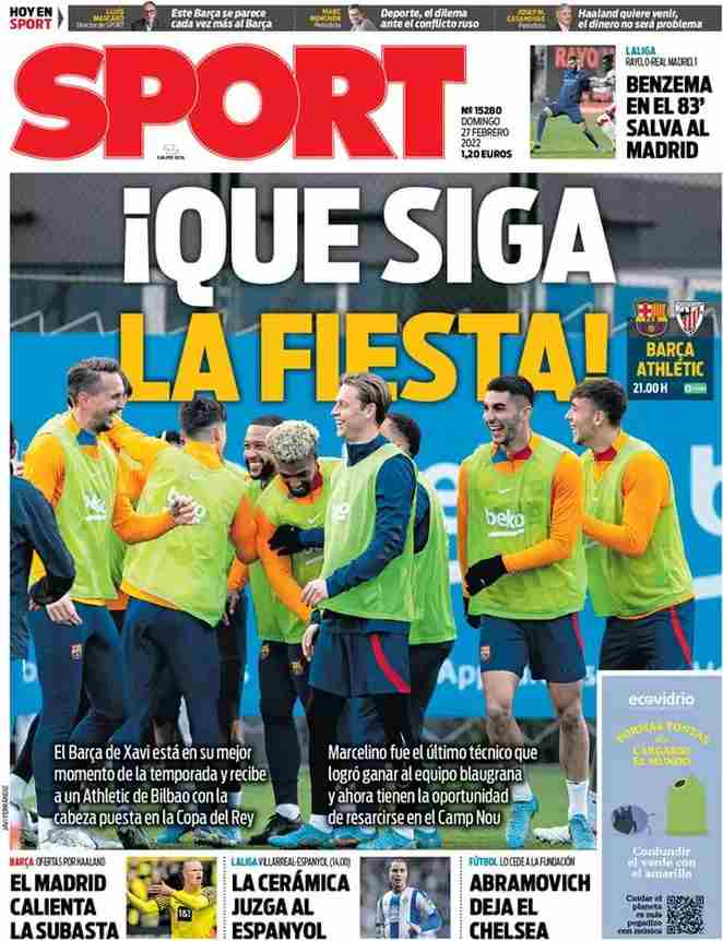 La rassegna stampa di Calciomercato.it vi propone i titoli principali sulla prima pagina di oggi, domenica 27 febbraio 2022, de ‘Sport’: