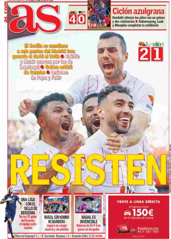 I titoli principali sulla prima pagina del quotidiano sportivo, As