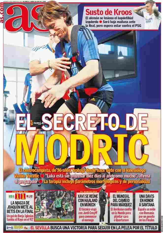 I titoli principali sulla prima pagina del quotidiano sportivo, As