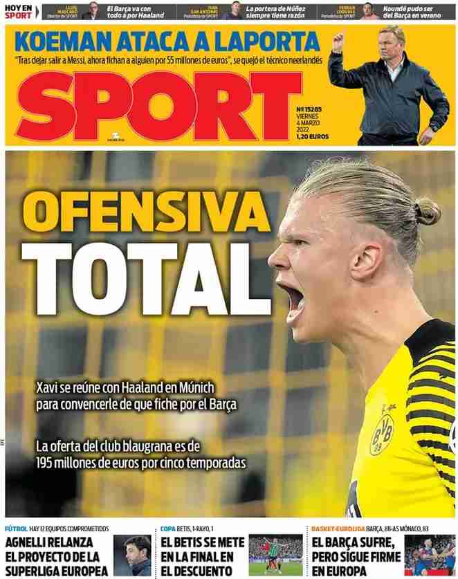 La rassegna stampa di Calciomercato.it vi propone i titoli principali sulla prima pagina di oggi, venerdì 4 marzo 2022, di ‘Sport’: