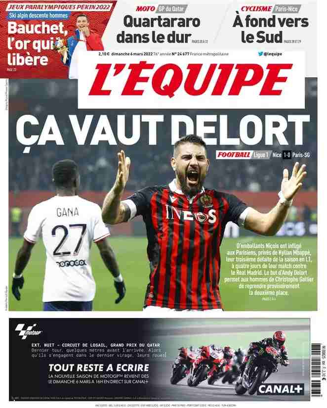 La rassegna stampa di Calciomercato.it vi propone i titoli principali sulla prima pagina di oggi, domenica 6 marzo 2022, de ‘L’Equipe’: