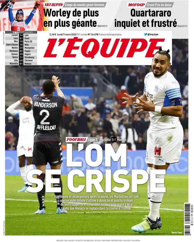 La rassegna stampa di Calciomercato.it vi propone i titoli principali sulla prima pagina di oggi, lunedì 7 marzo 2022, de ‘L’Equipe’: