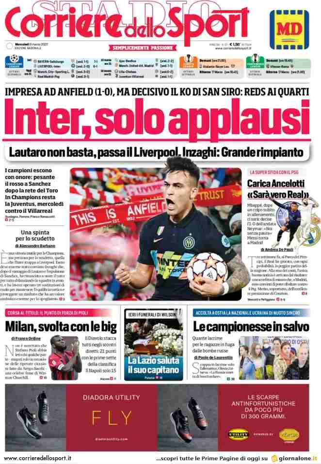La rassegna stampa di Calciomercato.it vi propone i titoli principali sulla prima pagina di oggi, mercoledì 9 marzo 2022, del ‘Corriere dello Sport’: