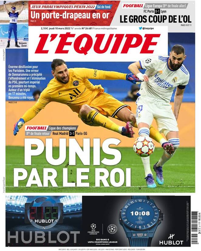 La rassegna stampa di Calciomercato.it vi propone i titoli principali sulla prima pagina di oggi, giovedì 10 marzo 2022, de ‘L’Equipe’: